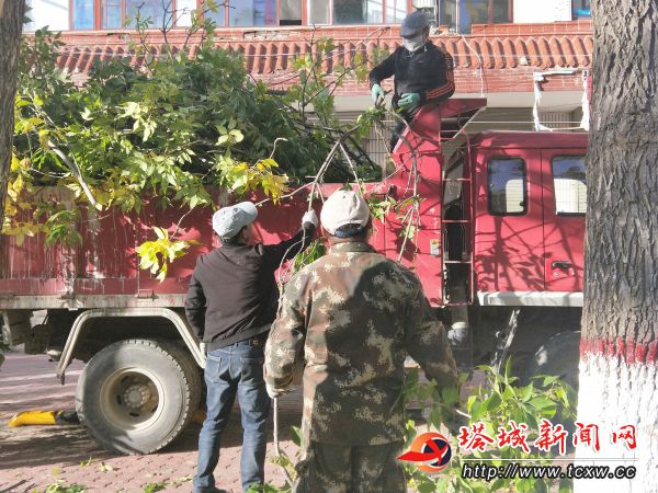塔城市修剪树枝美化市容市貌 方便市民出行