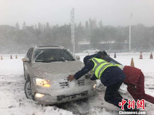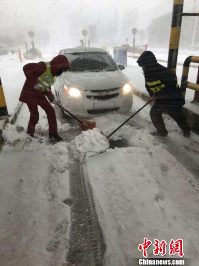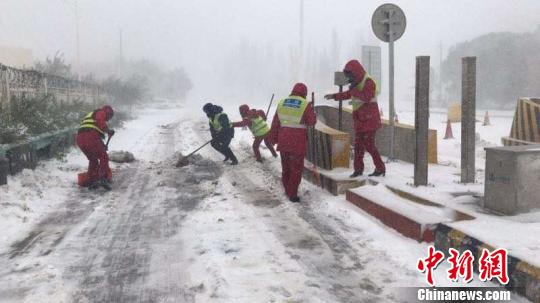中新网乌鲁木齐10月18日电(王小军 易清华)受冷空气影响,新疆巴州境内强降雪致多条道路通行受阻,公路养护工作人员坚守一线,奋力清雪,保障道路通畅。 10月18日7时许,巴州境内巴仑台山区普降大雪,致库尔勒公路管理局巴仑台分局管养路段G218清若线K406-K551(反修桥_巴仑台交警检查站)、S321火额线K00--k54路段因大雪,不具备安全行车条件,巴仑台分局联系当地交警部门对以上路段实行双向管制。目前,无滞留车辆和人员。大雪持续,道路通车时间待定。