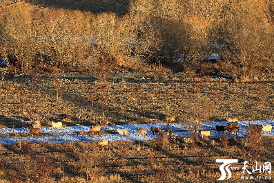 天山网讯(哈密日报记者曹新加报道)12月的冬季,新疆哈密市伊州区天山乡的积雪还没有完全覆盖大地,只在沟壑中存有少量的雪,但这积雪却勾勒出群山的肌理,让山体看着更加立体有型。林中田地的牛羊在阳光下悠闲地觅食,让天山乡显得格外宁静。此时的天山乡最美景色要属没有完全冰封的河道,已经封冻的冰和流淌的河水一静一动让人遐想联翩,就连不知名的小鸟也被这美景吸引,它站在冰上鸣啼,为空旷的山谷增添了不少灵动。
