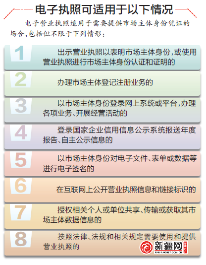 乌鲁木齐晚报讯(记者王璇报道)即日起,在乌鲁木齐开办企业,只要通过自治区市场监督管理局官网要求,3日内法人代表即可通过小程序拿到电子营业执照。企业拿营业执照从“最多跑一次”到“一次不用跑”。 电子营业执照,是指由市场监管部门依据国家有关法律法规、按照统一标准规范核发的载有市场主体登记信息的法律电子证件。电子营业执照与纸质营业执照具有同等法律效力,是市场主体取得主体资格的合法凭证。领取电子营业执照不见面、不收费,法人可根据业务需要自由选择。 1月1日,记者从市工商局了解到,市场主体设立登记后首次领取和下载电子营业执照,以及办理变更登记后重新领取和下载电子营业执照,应由经市场监管部门登记的公司的法定代表人、合伙企业的执行事务合伙人、个人独资企业的投资人、个体工商户的经营者、农民专业合作社的法定代表人以及各类企业分支机构的负责人(下称法定代表人)领取和下载。合伙企业有数个合伙人执行合伙事务的,应当协商决定由一名执行事务合伙人领取和下载合伙企业电子营业执照。 法定代表人领取电子营业执照后,可自行或授权其他证照管理人员保管、持有、使用电子营业执照。 近日,国家市场监管总局印发了《电子营业执照管理办法(试行)》,对市场监管部门发放和管理电子营业执照的行为、市场主体领取和下载及使用电子营业执照的行为、电子营业执照的政务和商务应用的行为都进行了规范和要求。 目前,各类企业、个体工商户和农民专业合作社,可通过微信、支付宝的“电子营业执照”小程序,根据页面信息提示,进行实名验证。输入姓名、身份证号、手机号码等信息,实名认证后下载您有权限下载的电子营业执照。 乌鲁木齐市工商局企业注册登记处(行政审批处)处长姜金坤介绍,电子营业执照具备防伪、防篡改、防抵赖等信息安全保障特性。根据法人在登记机关登记的姓名和二代身份证信息,辅以人脸识别技术,经过实名实人认证后,即可在手机移动端下载领取电子营业执照,无需到登记机关窗口领取;对于电子营业执照和纸质营业执照,企业可选择申领其中一种,也可同时申领两种。 只领取电子营业执照的市场主体,应下载并打印电子营业执照文件,置于营业场所的醒目位置,或通过电子显示屏等方式亮明电子营业执照。 电子营业执照文件的内容和版式与纸质营业执照基本相同。电子营业执照文件中标注“电子营业执照”水印和数字签名值,不显示登记机关印章。社会公众、相关单位和机构使用电子营业执照应用程序或接入电子营业执照系统,可实时联网验证市场主体电子营业执照真伪、查询市场主体身份信息及状态,并可同步比对查验电子营业执照持照人相关信息。 随着乌鲁木齐工商和市场监管部门深入推进“放管服”“最多跑一次”改革,企业准入环境持续优化提升。截至2018年10月31日,全市新增各类市场主体46374户。截至目前,乌鲁木齐已有超过5万户企业申领了电子营业执照。