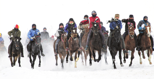 新疆昭苏县雪地赛马激情上演 冬季游引八方来客