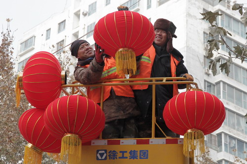 新疆阿克苏市城区挂灯笼 迎新年