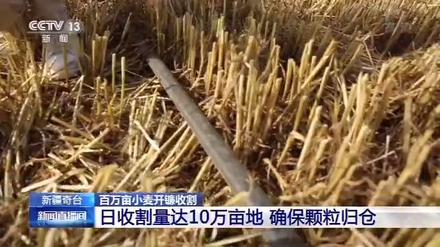新疆天山以北地区小麦陆续进入成熟期。新疆重要的粮食产区,昌吉州奇台县的百万亩小麦开镰收割。 随着小麦陆续成熟,新疆奇台县西北弯镇的柳树河子村也开启了每年最繁忙的丰收季。今年奇台县一共种植了104万亩小麦,连片的麦田里麦浪滚滚非常壮观。奇台县也是新疆最大的粮食生产基地,平均每年的小麦产量可以达到4亿公斤,占到了新疆整个产量的六分之一。 干旱少雨 节水灌溉保证平原区小麦产量 从今年春季开始,新疆北疆多地出现了干旱少雨,气温偏高的现象。所幸这里的节水灌溉技术保障了小麦今年的收成。滴灌带是在小麦种植的时候和小麦的种子一起埋在了地底下,通过里面的小孔,把水和肥料一滴一滴均匀滴在小麦根部附近的土壤中,达到高效节水的灌溉和施肥的作用。 到目前为止,奇台县有80%以上的耕地都实现了这样一个灌溉的技术。在当地各种措施保障之下,今年奇台县平原地区的小麦长势良好,根据当地农业部门的测算,今年的产量和去年差不多,可以达到每亩550公斤以上。 日收割量达10万亩地 确保颗粒归仓 因为这里小麦的成熟季节都集中在这一时间段,所以昌吉州为了确保夏收,总共准备了1200台收割机,通过信息化管理平台统一调配,在高峰期的时候可以实现一天最多收割10万亩地,确保成熟一块收获一块,保证颗粒归仓。 昌吉州的收割机具有先进水平,宽度将近7米,效率非常高,它的粮仓最多可以储存8吨小麦。打包机紧跟着收割机,将其吐出的小麦秸秆打包成紧实的方块,便于运输和堆放。 打成捆的方块秸秆会用于牛羊的饲料,这也是当地农民除了粮食之外另外一份收入。