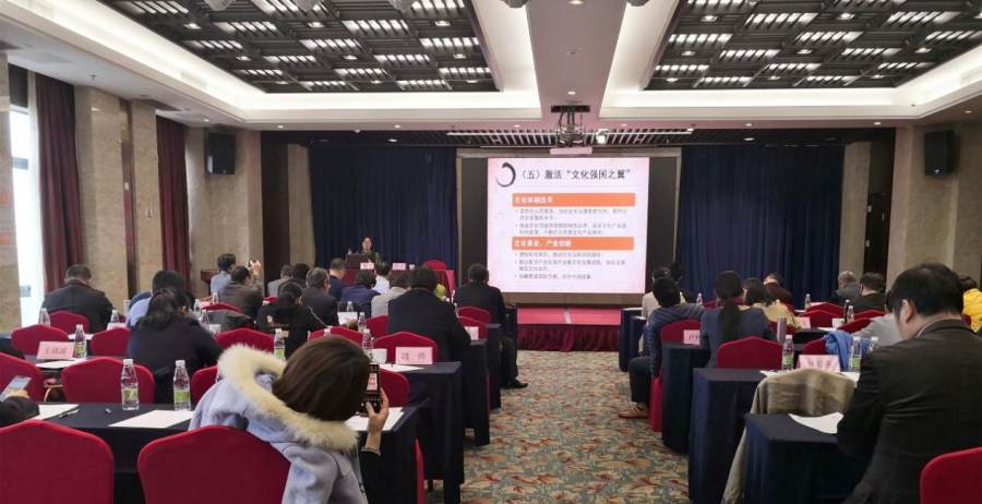 专题讲座现场 此次会议邀请省委党校詹贤武教授和杨显教授,分别作“从文化大国迈向文化强国”和“坚定文化自信”两场学习贯彻党的十九届五中全会精神的文化专题讲座。会议还安排学员参观学习了文艺“两新”组织党建工作。
