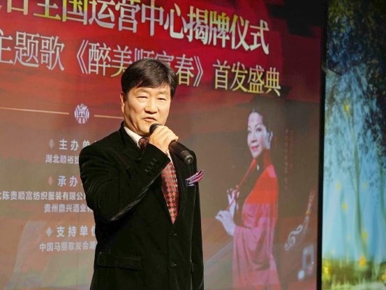 黄浩胜董事长深情回顾了企业从牛仔实业跨界酱酒产业的发展历程,分享了与楚台酒结缘的传奇故事——从“惟楚有材,偏爱楚台”的品牌宣言,到双方企业“燕窝筑巢”般的天赐良缘,字里行间彰显着实业同源、匠心传承的深厚根基。黄浩胜董事长表示,贵州楚台全国运营中心的成立,是集团整合贵州优质酱酒资源与湖北区域市场优势、搭建产销协同核心枢纽的重要举措,标志着楚台品牌由湖北走向全国的战略布局全面落地。 黄浩胜董事长特别强调,《醉美顺富春》是顺富·顺裕继《一起来顺富》《楚台之恋》后的第三首企业主题歌,三首歌谣串联起企业三步发展的传奇轨迹:从牛仔纺织的实业根基,到楚台酱酒的品牌拓展,再到文化歌曲的精神升华。多年来,企业始终坚守“实业报国、文化兴企”理念,以产品输出为基础,以文化输出为升级,致力于实现品牌价值与社会价值的双重提升,更阐述了“顺势而为,以人为本,强国富民”的企业宗旨,以及打造物质文明与精神文明双丰收“尧天舜地”的理想追求。