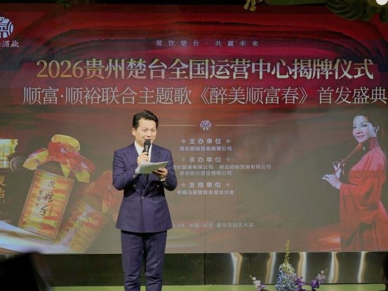 实业筑基 文化赋能 共赢未来——贵州楚台酒全国运营中心揭牌仪式暨《醉美顺富春》首发庆典圆满举行 3月20日,农历二月初二龙抬头,恰逢二十四节气春分,双吉交汇、万象更新。湖北顺裕贸易2026贵州楚台全国运营中心揭牌仪式暨顺富·顺裕联合主题歌《醉美顺富春》首发盛典,于武汉盛大启幕。这场以“品牌赋能·文化聚力·共筑未来”为核心主旨的盛会,以实业布局与文化创作双轮驱动,构建起“实业筑基+文化赋能”的战略新格局,标志着顺富·顺裕集团在酱酒产业全国化布局与品牌文化升级之路上,迈出了关键性的一步。